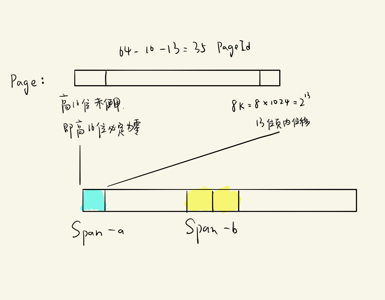 TCMalloc 的 Page 大小默认是 8K = 2^13 ,低 13 位构成页内偏移