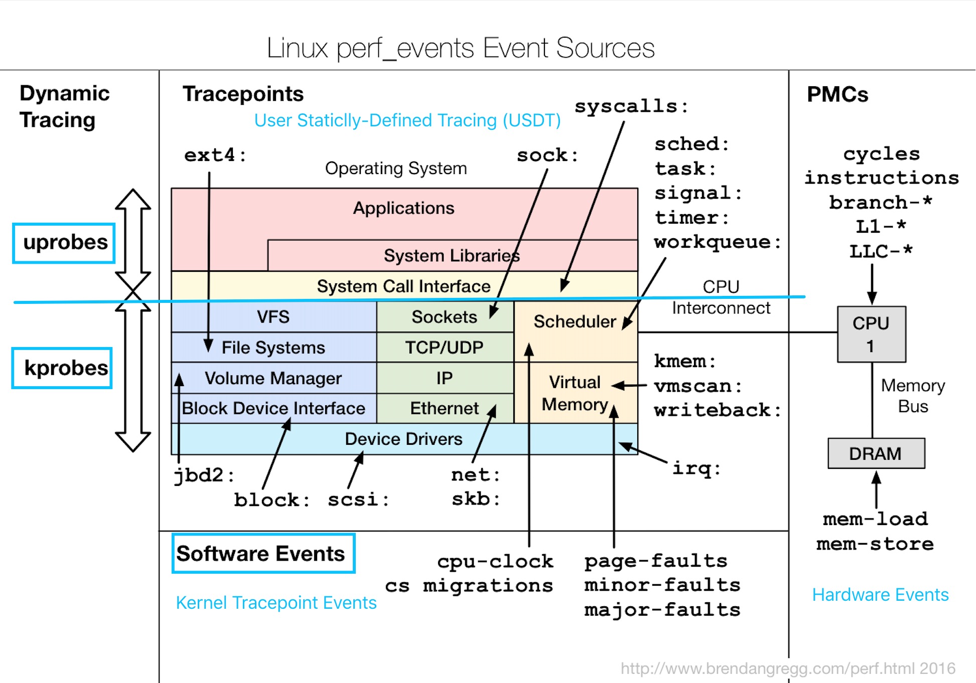 # sudo perf probe -V mmap_region Available variables at mmap_region @<mmap_region+0> char* __func__ long unsigned int addr long unsigned int len long unsigned int pgoff struct file* file vm_flags_t vm_flags # sudo perf probe --add 'mmap_region addr' Added new event: probe:mmap_region (on mmap_region with addr) You can now use it in all perf tools, such as: perf record -e probe:mmap_region -aR sleep 1 # sudo perf record --call-graph dwarf -e probe:mmap_region ./mmapButNotWritten 0x7f8eb7a04000 [ perf record: Woken up 1 times to write data ] [ perf record: Captured and wrote 0.217 MB perf.data (25 samples) ]