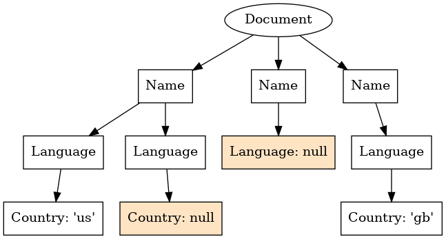 | value of Document.[Name].[Language].Country | repeated with | repeated at | common father of 'repeated at' | repetition level |