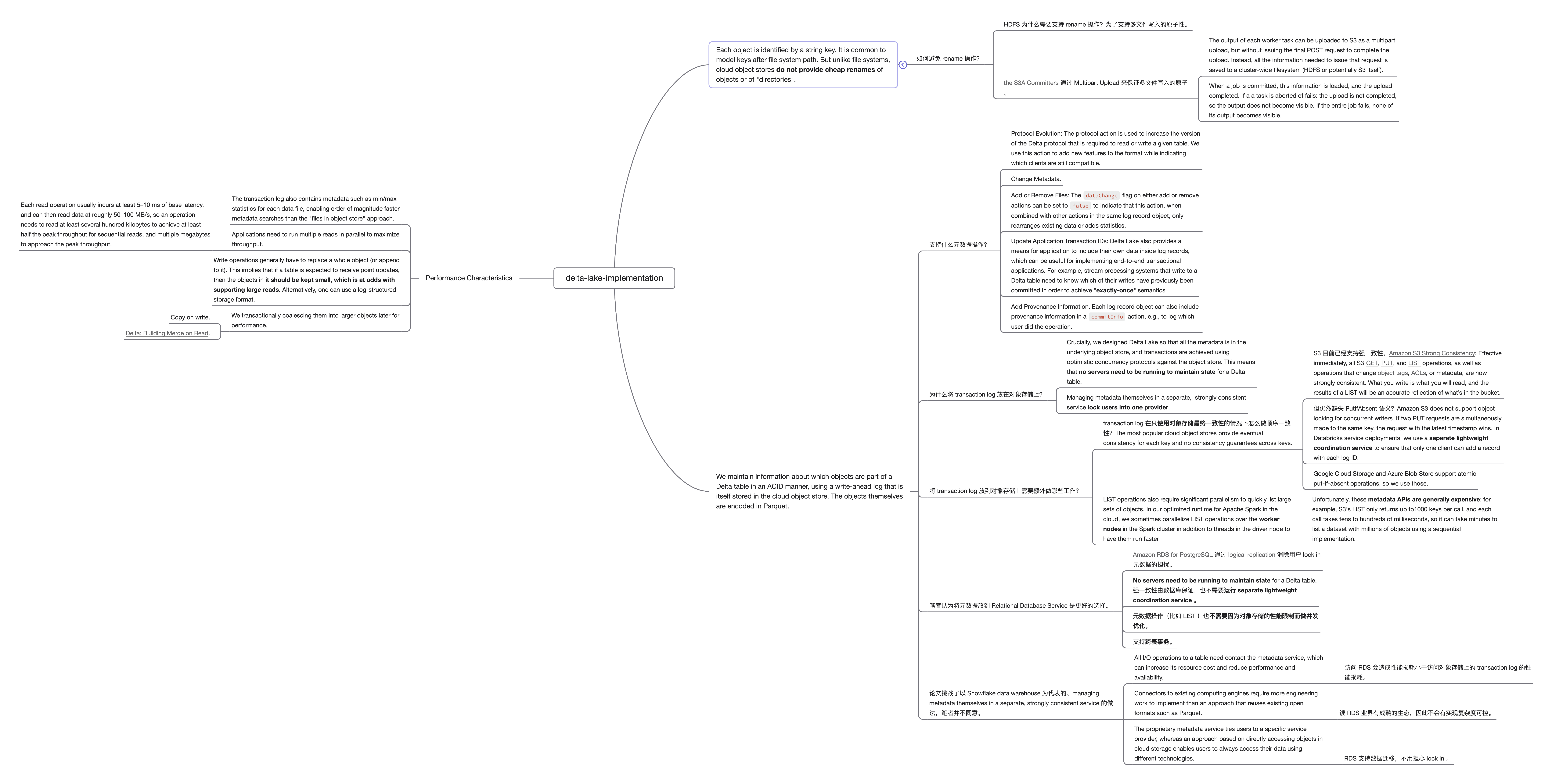 Delta Lake 的架构相较于 HDFS 有以下几点变化,详细可查看幕布: