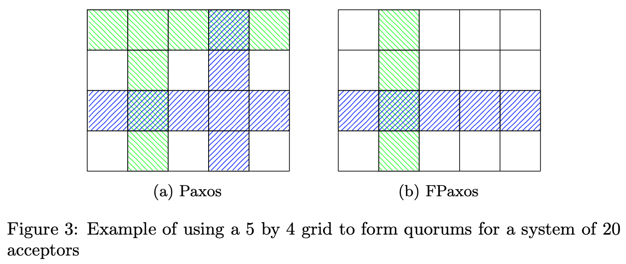 - In FPaxos, we can safely reduce our quorums to one row of size \(N1\) for \(Q1\) and one column of size \(N2\) for \(Q2\), examples are shown in Figure 3b.